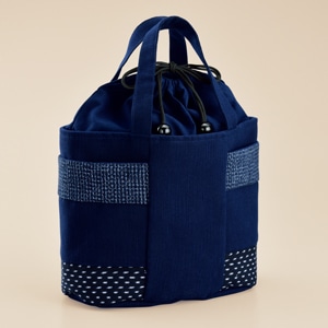 ワントーンのシックな和柄のトートバッグ。巾着を絞れば目隠しになるので安心です。