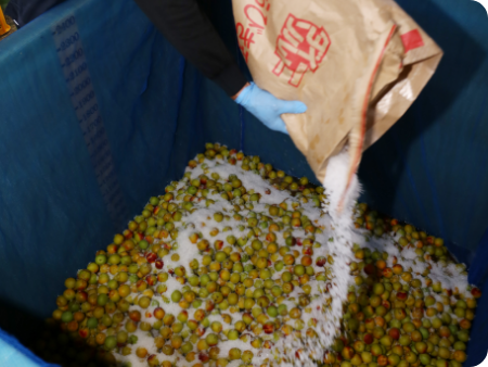 収穫した梅は丁寧に水洗いし、天然塩でじっくり塩漬けにします。