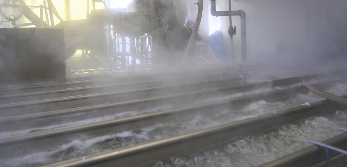 多くのしらす加工場では、茹でたしらすをせいろに移す作業があり、冷やすまでに時間がかかってしまいます。