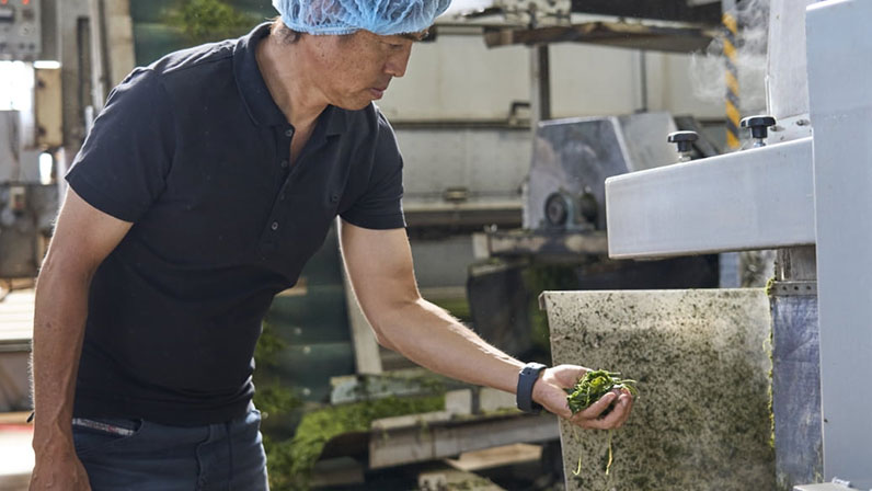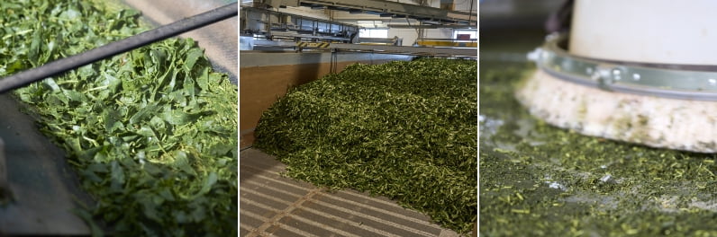 ここまでの工程を、お茶を摘んだその日のうちに行うことで、新鮮で青々とした未発酵の茶葉が保たれるのです。