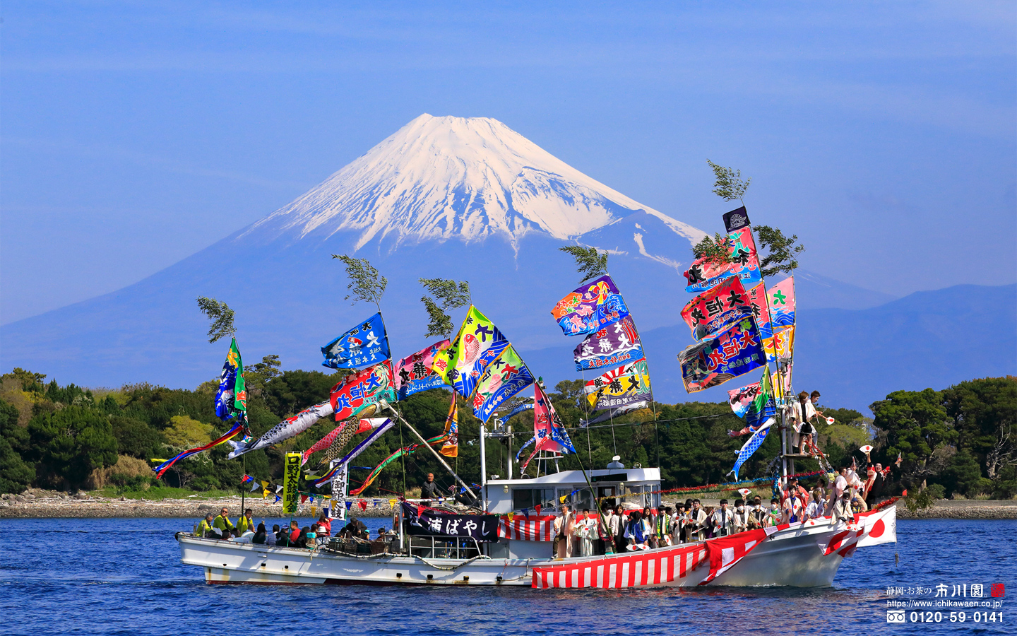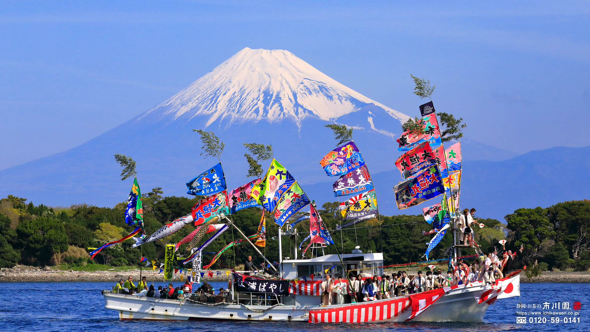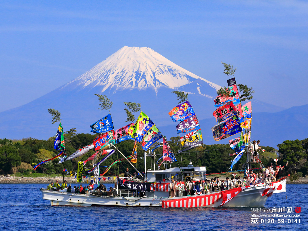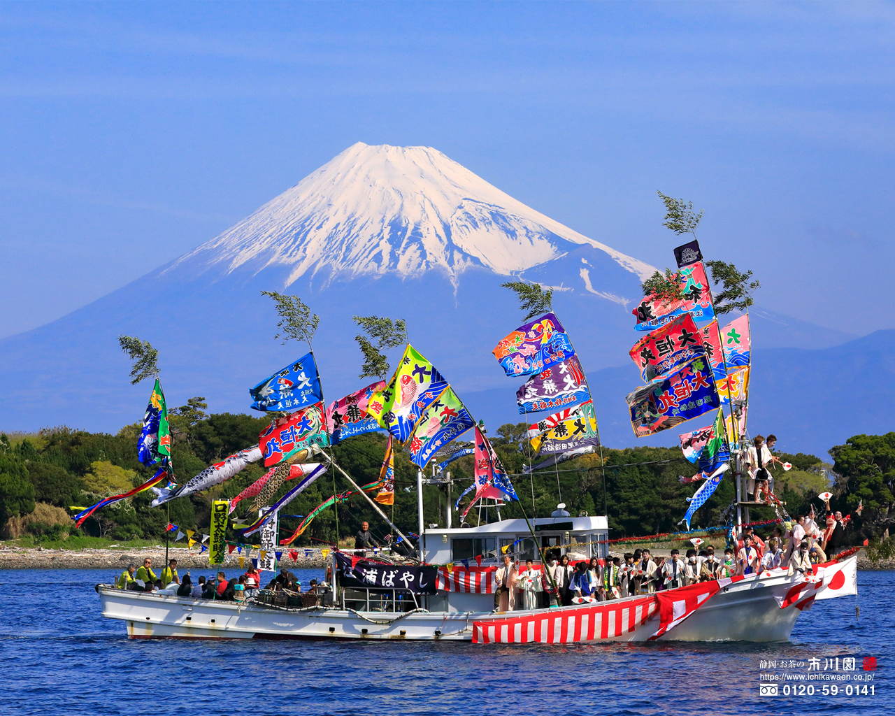 富士に抱かれる祭り舟(沼津市大瀬崎)
