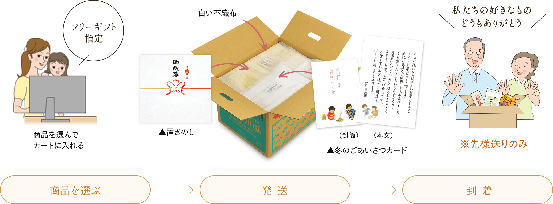 - ※先様送りの贈り物には、宣伝物は一切入れませんのでご安心ください。