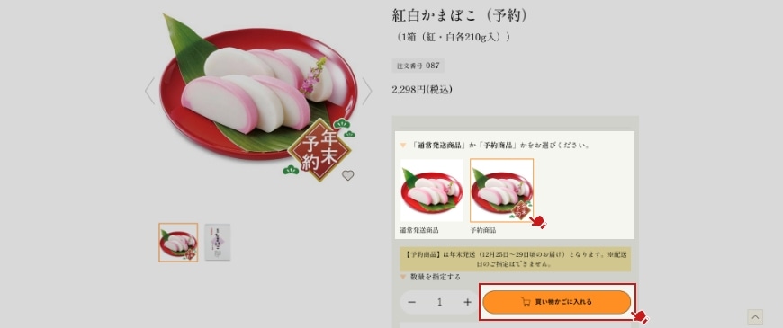 「予約商品」「通常発送」のうち「予約商品」を選び、カートに入れてください。